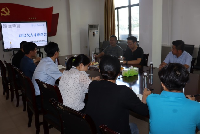 高层次人才座谈会上,“教育部新世纪优秀人才”刘波教授、“中科院百人计划”常强教授、“天山学者”刘慧强教授3位高层次人才相继作了发言,分享了来院后个人工作、生活的感受体会,感谢学院领导的亲切关怀、无微不至的服务,表示将不辜负学院期望,努力工作,为学院建设添砖加瓦。同时,结合学院实际,对推动科技成果产业化、完善课程体系建设、提高各种实验设备利用率等提出了意见和建议。