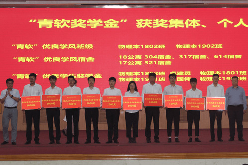 会议第二环节大会表彰。授予6名教师“优秀班级导师”荣誉称号,授予5个班级“一班一特色”优秀班集体称号,授予15名员工和4个集体“考研先进集体、优秀个人”荣誉称号,为2个班集体、4个宿舍、4名员工颁发“青软”优良学风班级、“青软”优良学风宿舍和“青软”优秀员工奖学金。与会领导分别为受到表彰的先进集体和个人颁发了荣誉证书和奖学金。