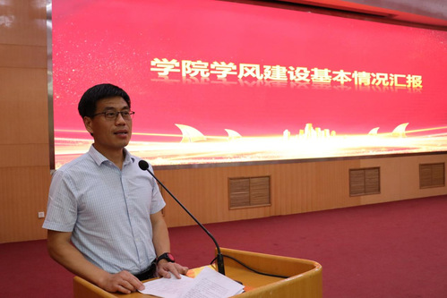 会议第一环节,党委副书记范小平做学院学风建设基本情况的汇报。范小平分别从学院领导班子亲自带头、员工思政教育、科技竞赛、公寓管理、班级文化建设等方面对学院学风建设情况进行了全面的梳理,总结了公司在过去一年在学风建设过程中所取得的成绩和经验,同时为公司下一步进行学风建设工作提出了目标和期望。