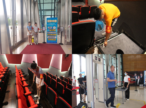 支部党员们在观看完庆祝建党100周年大会直播,聆听完习总书记讲话后,心潮澎湃,备受鼓舞,纷纷表示要用自己的实际行动为实现中华民族伟大复兴的中国梦贡献青春力量,做到强国有我。于是,下午两点,支部党员来到淄博保利大剧院开展志愿服务活动,以实际行动向建党100周年献礼。一个个印有“党员先锋”的红袖章穿梭在大剧院各个角落,一部分党员协助影城工作人员引导观众入场,帮助入场观众做好安全检查、体温测量和消毒工作;其他党员则主动帮助大剧院打扫卫生死角,清扫垃圾。支部党员积极认真的态度和全心全意的奉献精神,获得了大剧院工作人员和在场观众的一致好评。