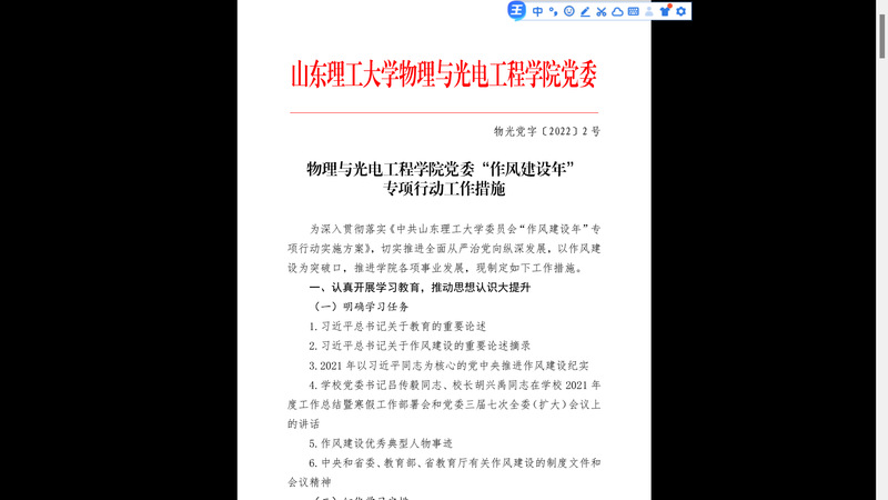 最后,她号召全体师生要以“雄关漫道真如铁”的恒心和“敢教日月换新天”的勇气,切实以作风建设为突破口,推进全面从严治党向纵深发展,推进学院各项事业取得更大的进步与发展,以优异成绩迎接党的二十大胜利召开。
